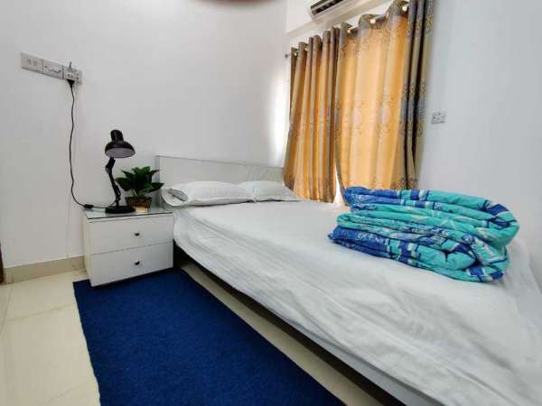 Fully Furnished Two Bedroom Serviced Apartment RENT in Bashundhara R/A. Short-Term Rentals are available with Kitchen, TV, Geyser, Refrigerator, WiFi, Microwave oven, A/C.