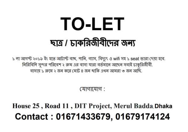 ক্যাটাগরি ব্যাচেলর বাসা