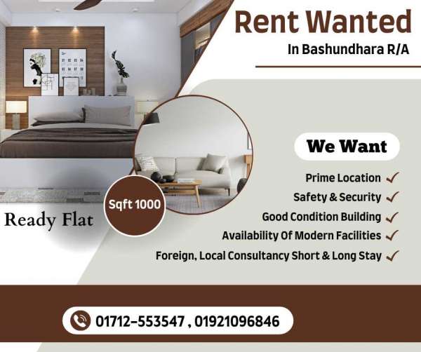 We are looking for residential apartment (1000 Sqft) for rent in Bashundhara R/A . Only respected owners can contact with us.