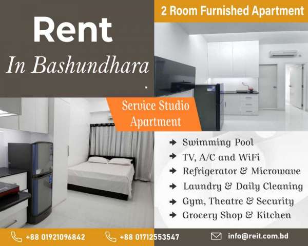 Two Room Furnished Serviced Apartment RENT in Bashundhara R/A. Short-Term Rentals with Kitchen, TV, Refrigerator, WiFi, Microwave oven, A/C.