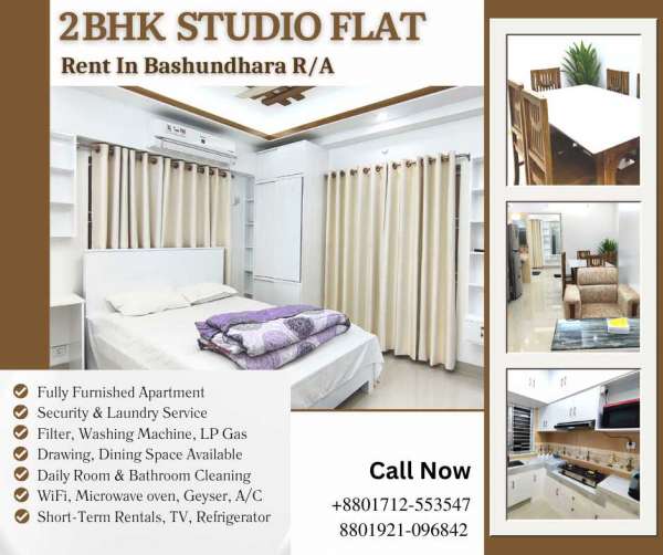 Two Bedroom Serviced Apartment Rent In Bashundhara R/A Our serviced apartment is fully decorated with modern amenities. You can take it as a Short-term or Long-term basis for your vacation rental. All the facilities are available like TV, geyser, refrigerator, WiFi, microwave, and air conditioning, laundry services etc. . Facilities Available >Fully Furnished Apartment >Security & Laundry Service >Filter, Washing Machine, LP Gas >Drawing, Dining Space Available >Daily Room & Bathroom Cleaning >WiFi, Microwave oven, Geyser, A/C >Short-Term Rentals, TV, Refrigerator . Website: https://www.hotels.com.bd/rental/apartment-furnished YouTube: https://www.youtube.com/watch?v=8kJKBg9LRkM&t=2s . Contact For Booking: +88 01712553547 +88 01921096846